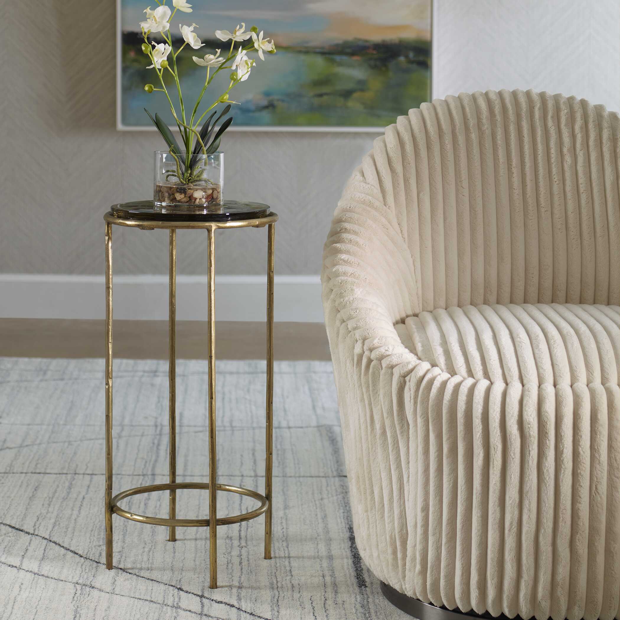 The simple aluminum base, finished in a matte black, is understated, letting the beautiful mercury black honed marble top steal the show. The color variations in the marble combine together to make this piece a perfect choice with so many different decors.