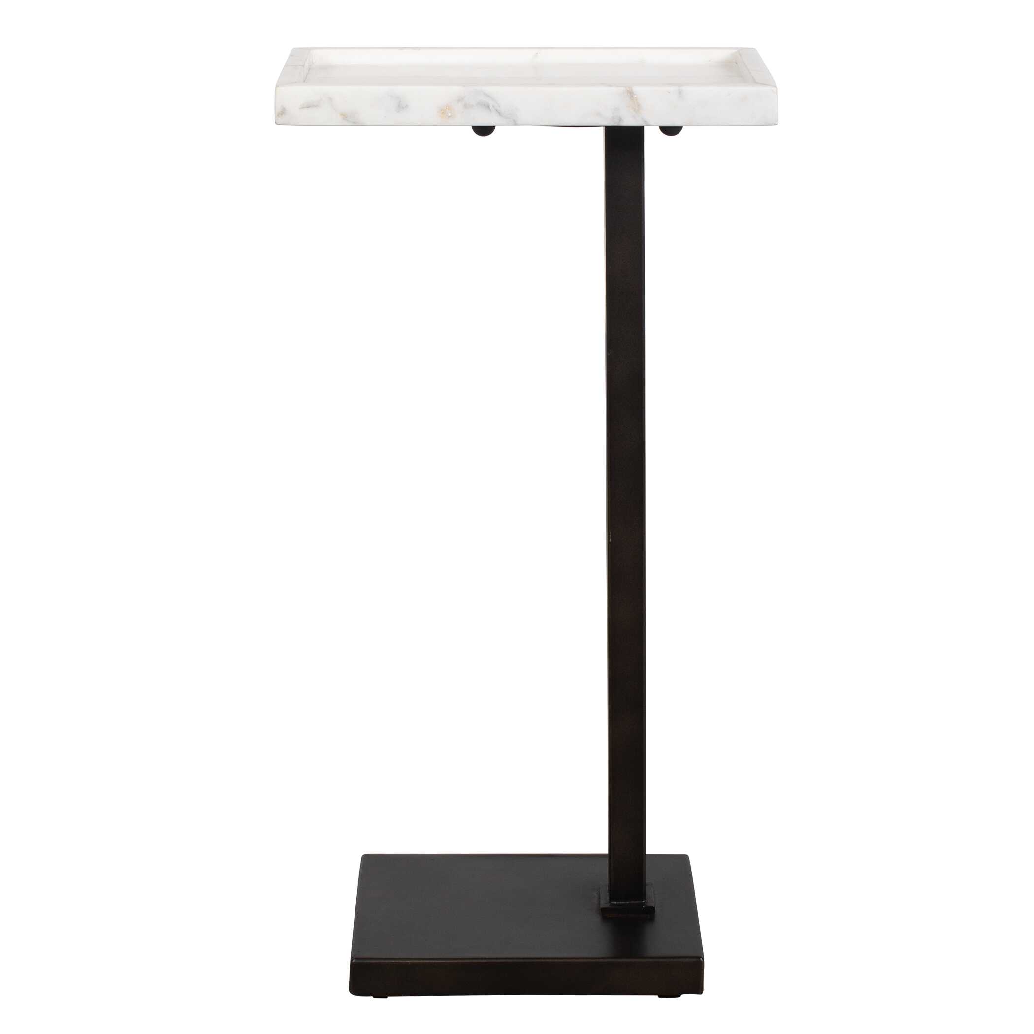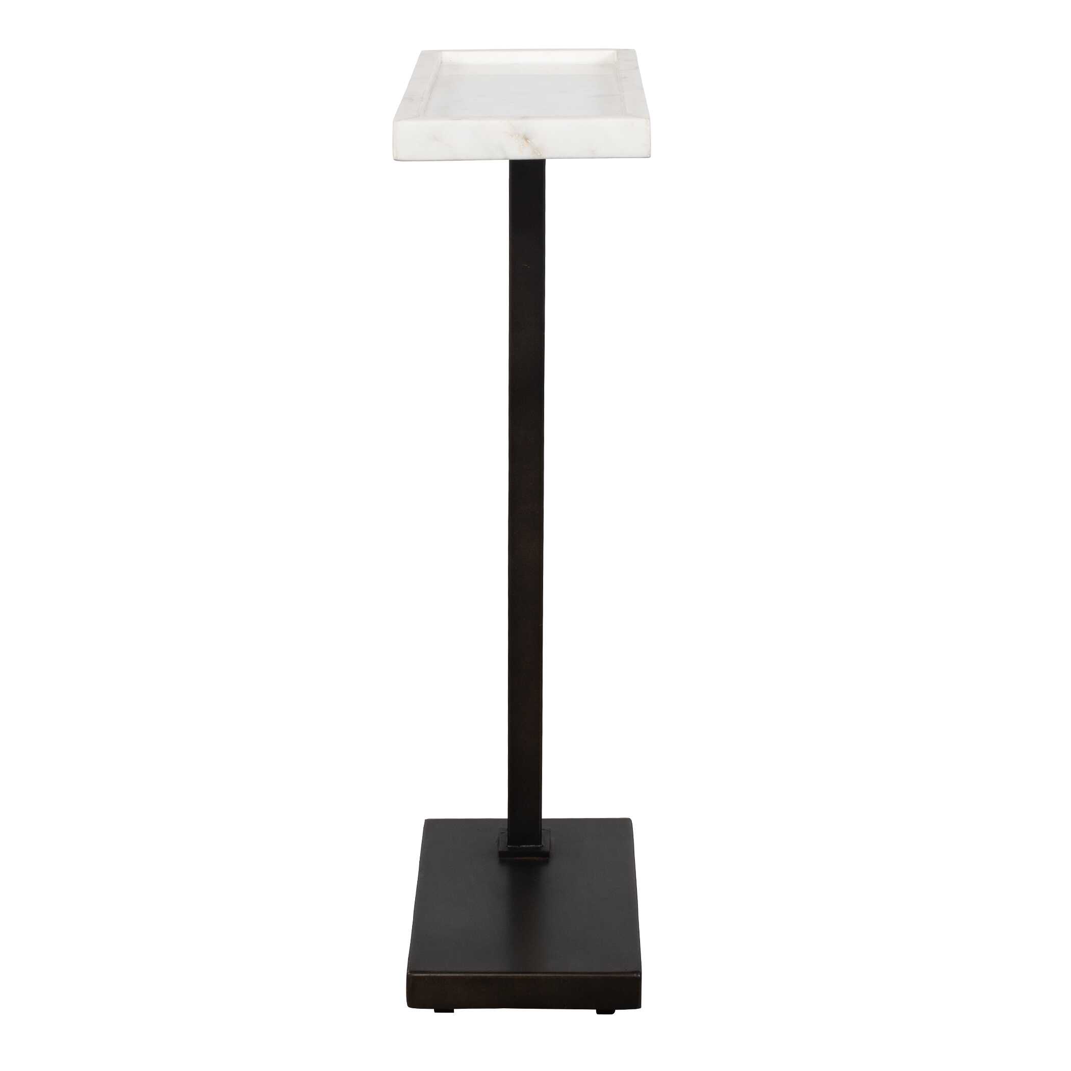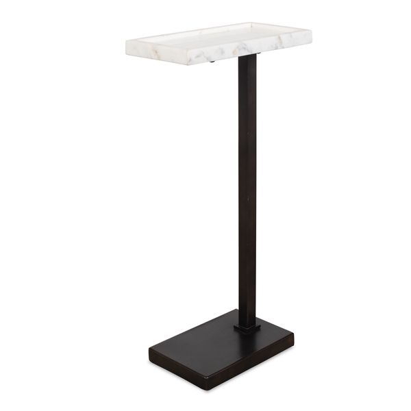 Crafted from sturdy iron, this accent table is finished in a rich dark bronze that brings warmth and durability to its clean, architectural silhouette. Topping the design is a rectangular tray-shaped surface made of white marble. This accent table blends timeless materials with modern style.