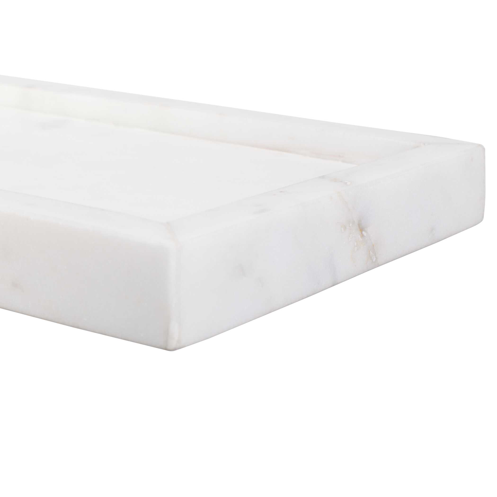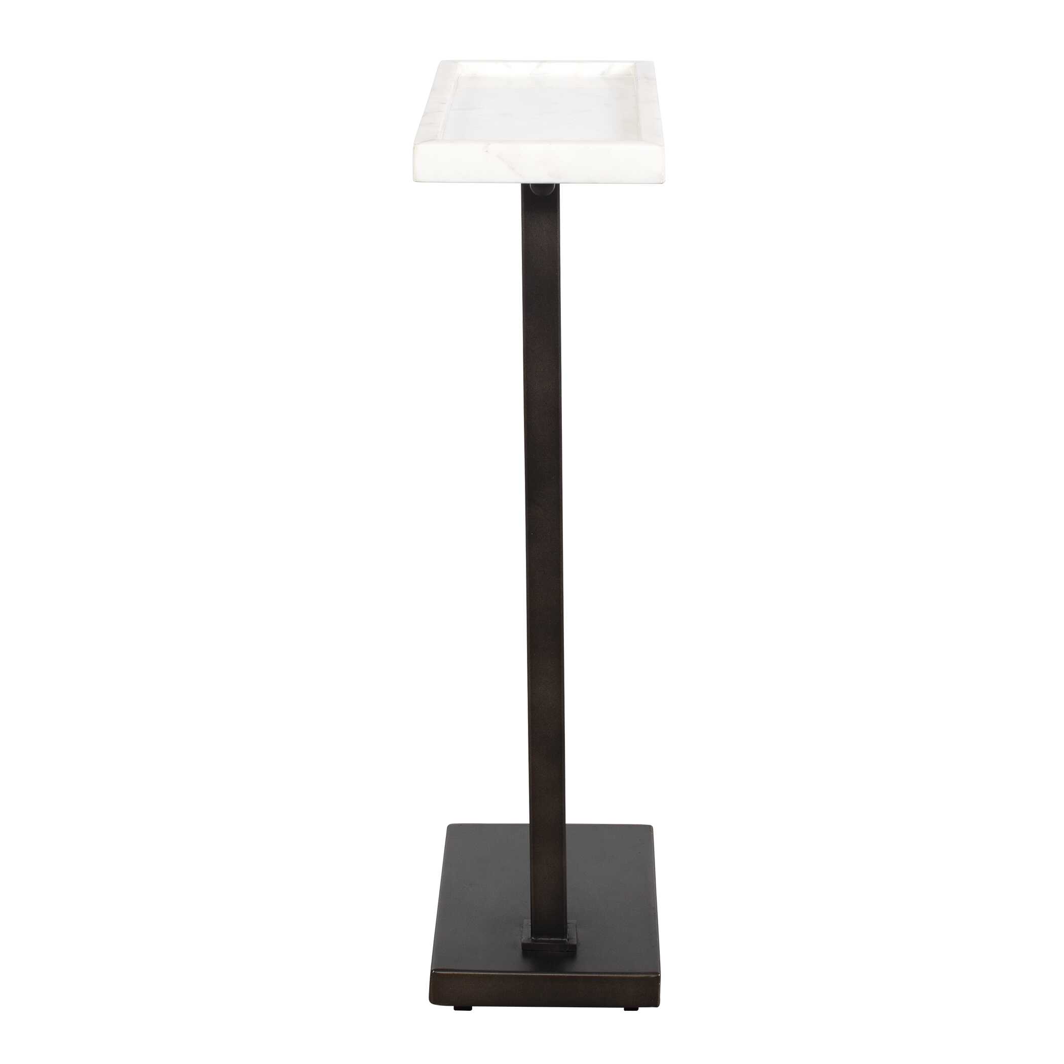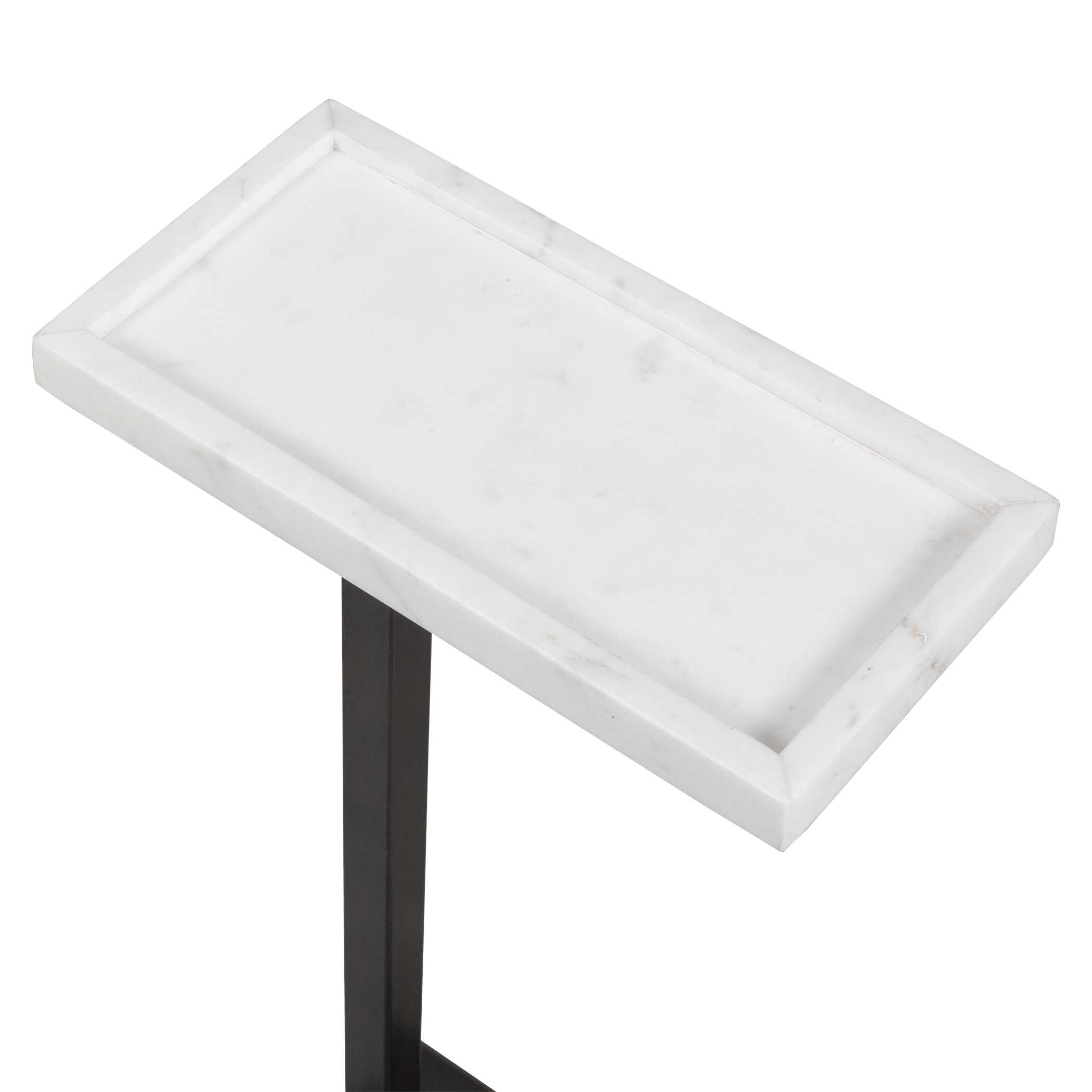 Crafted from sturdy iron, this accent table is finished in a rich dark bronze that brings warmth and durability to its clean, architectural silhouette. Topping the design is a rectangular tray-shaped surface made of white marble. This accent table blends timeless materials with modern style.