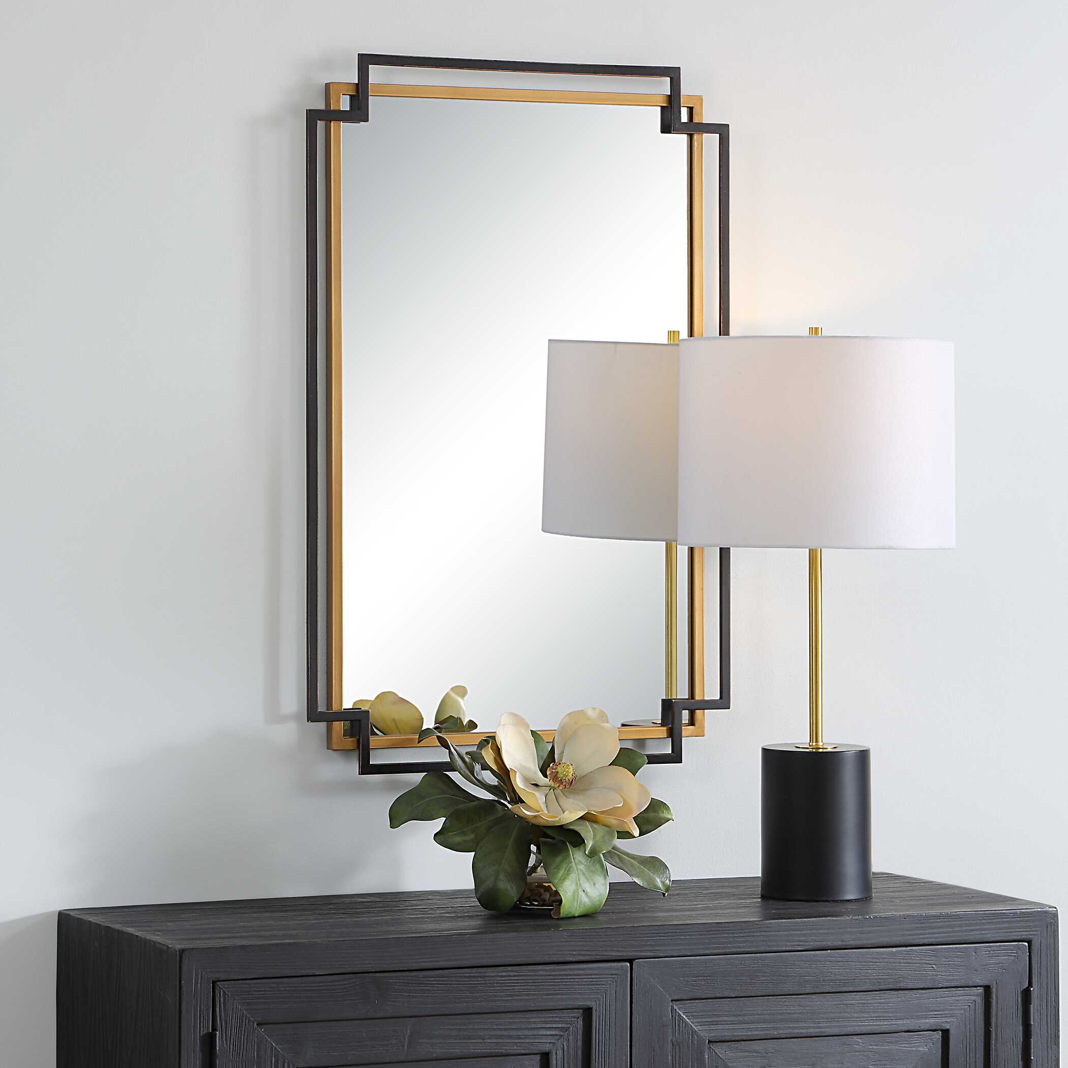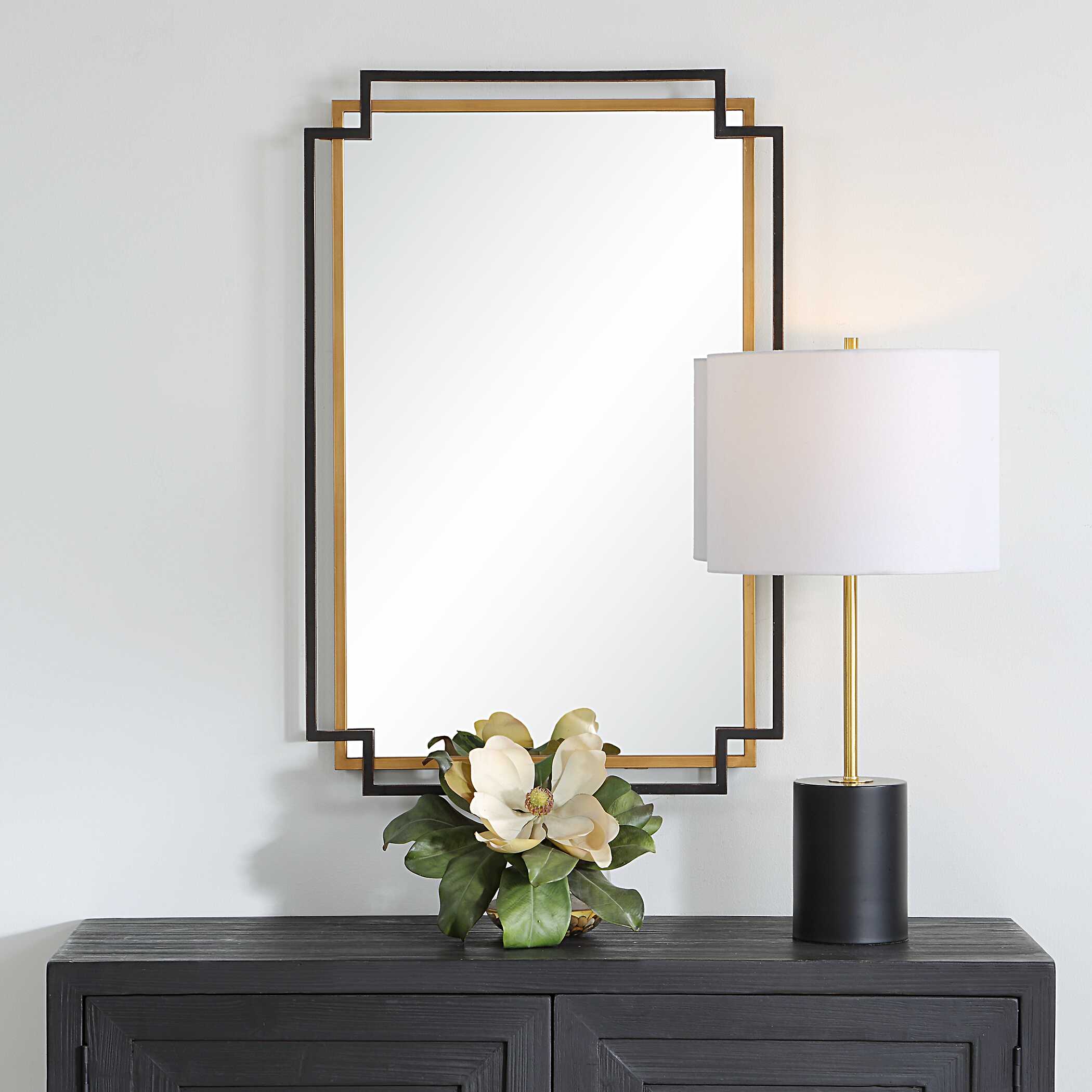 This layered frame, made from engineered wood, features flowing scalloped edges and finished in an antique bronze and gold, creating a vintage charm. May be hung either vertically or horizontally.