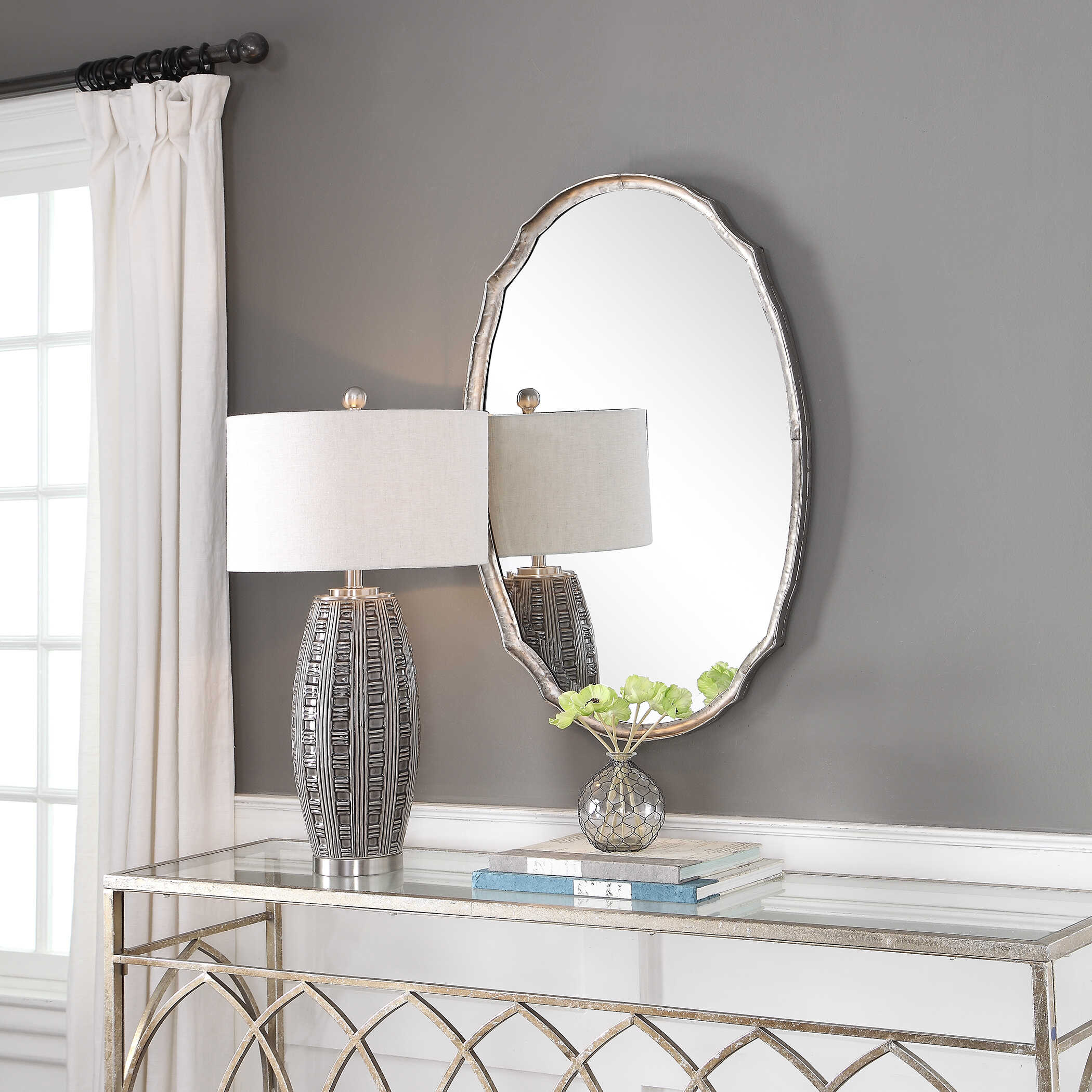 The soft rounded corners of this rectangular mirror give a refined, contemporary look, while the satin black finish adds a modern edge. The beautifully crafted profile features an inset trim that introduces subtle depth and dimension. This mirror blends clean lines with thoughtful detail, offering both function and a timeless design. May be hung either vertically or horizontally.