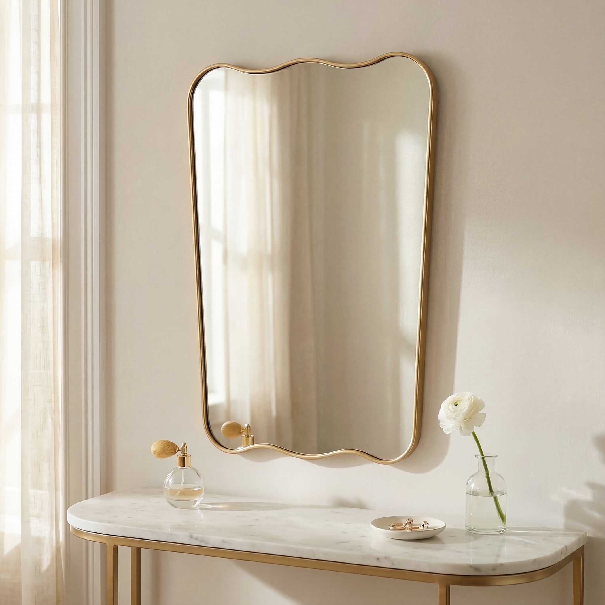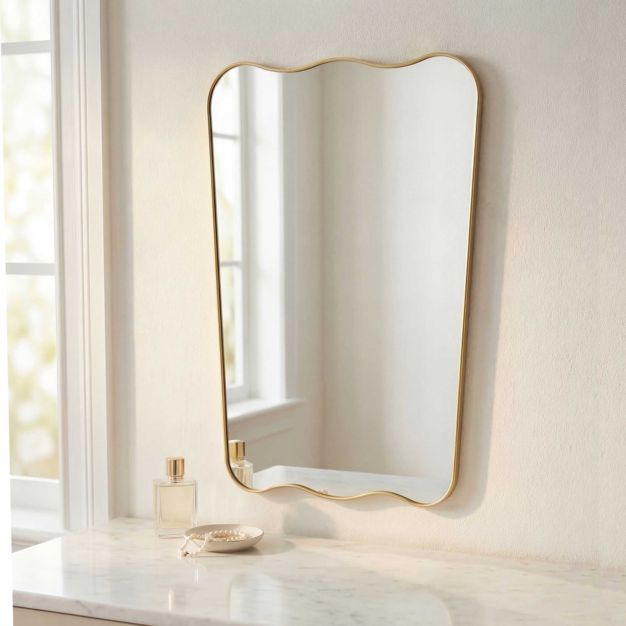 The soft rounded corners of this rectangular mirror give a refined, contemporary look, while the satin black finish adds a modern edge. The beautifully crafted profile features an inset trim that introduces subtle depth and dimension. This mirror blends clean lines with thoughtful detail, offering both function and a timeless design. May be hung vertically or horizontally.