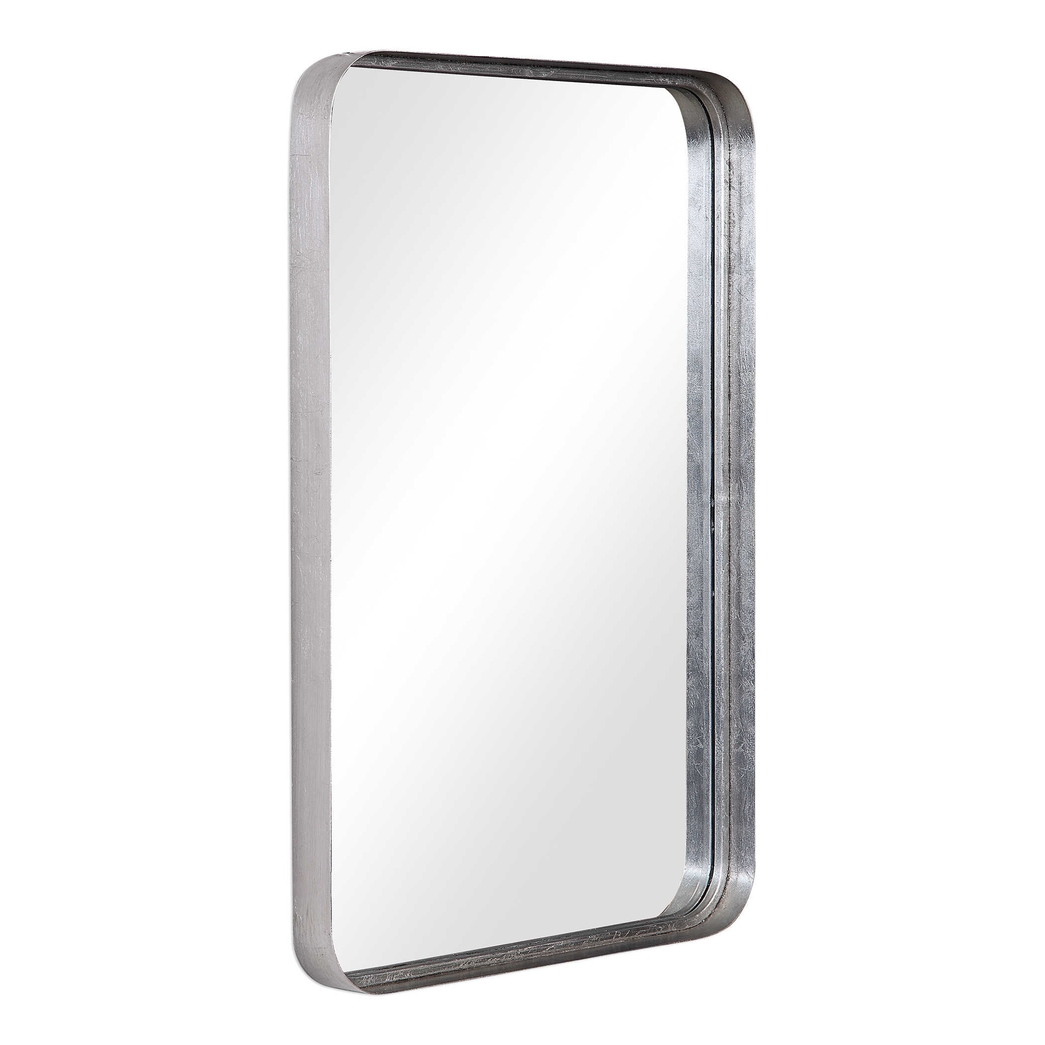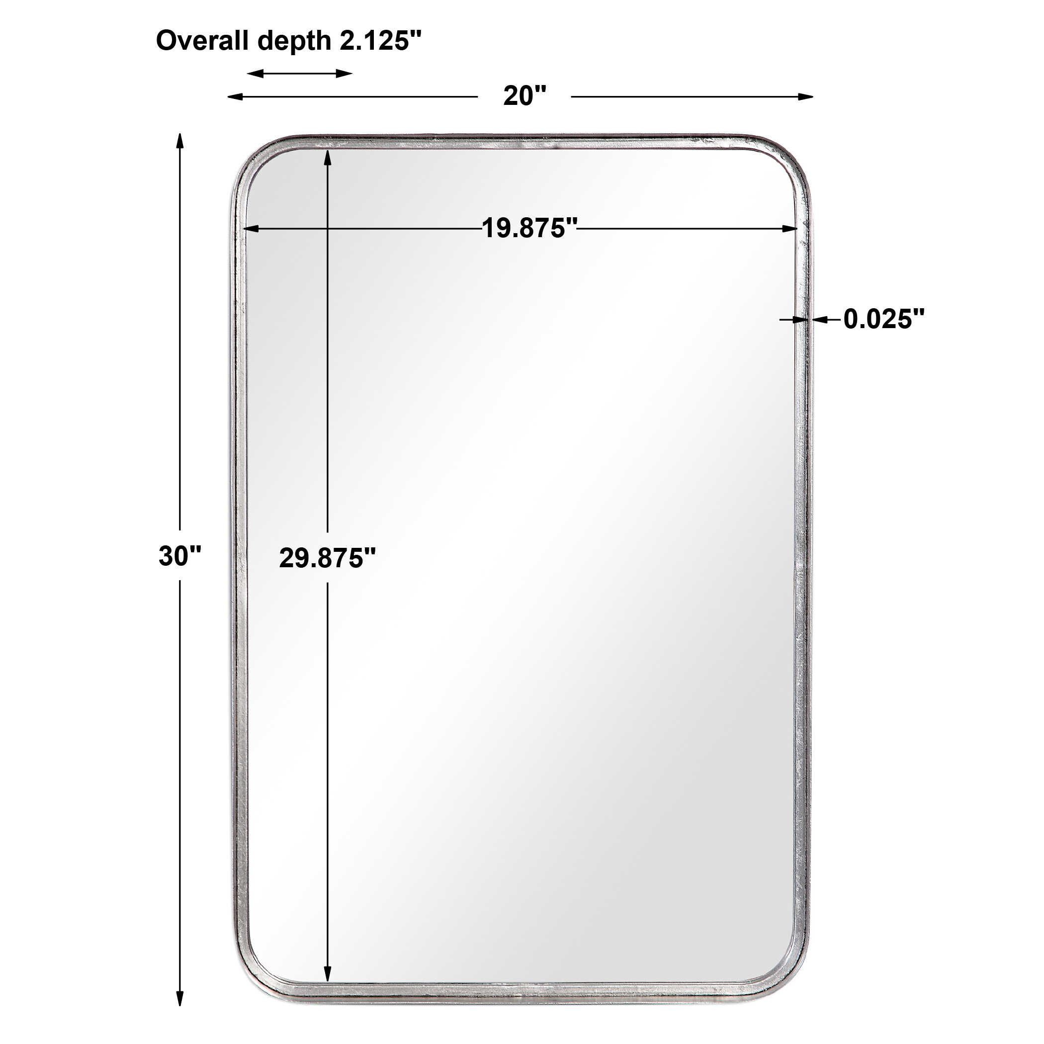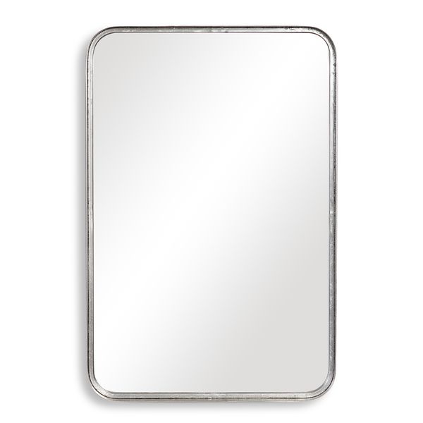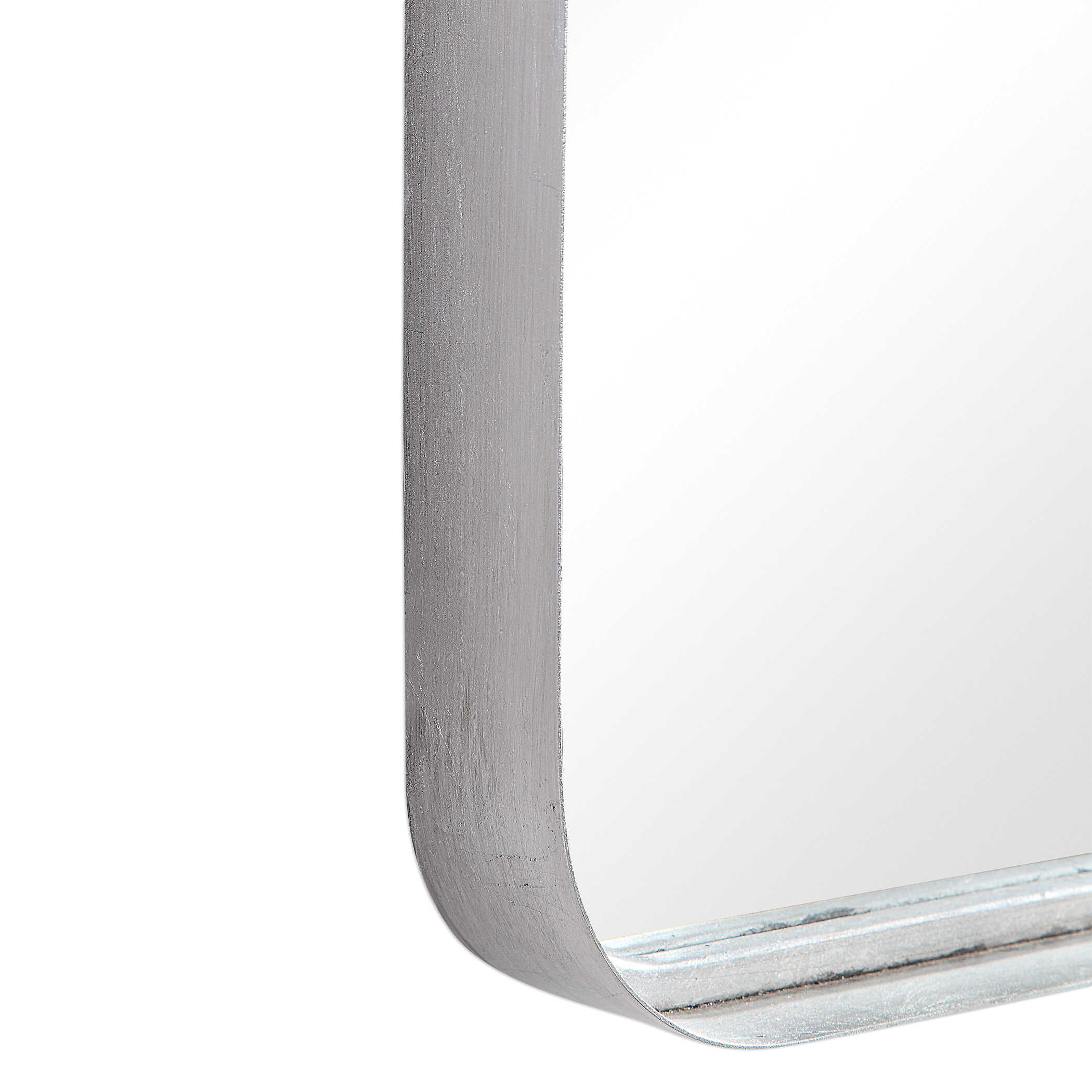 This frame features mirror inlays, separated by thin, grooved framing strips, finished in a metallic silver. The center mirror has a 1" bevel. This frame may be hung either vertically or horizontally.