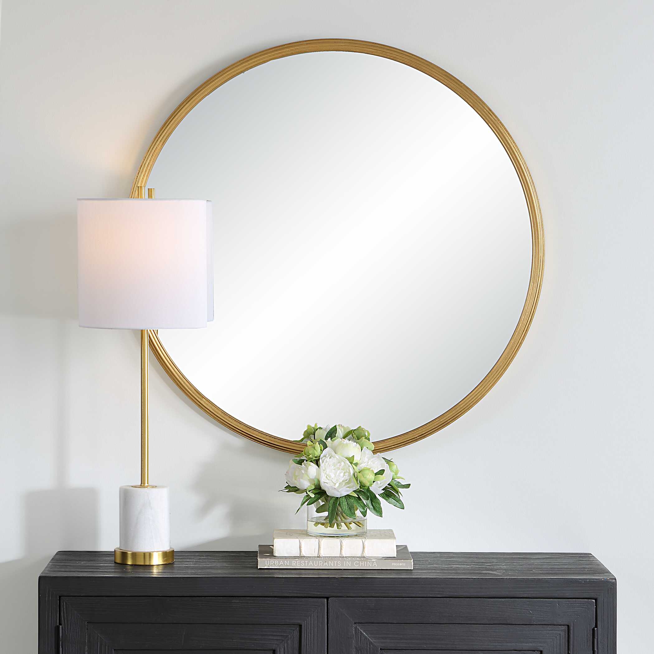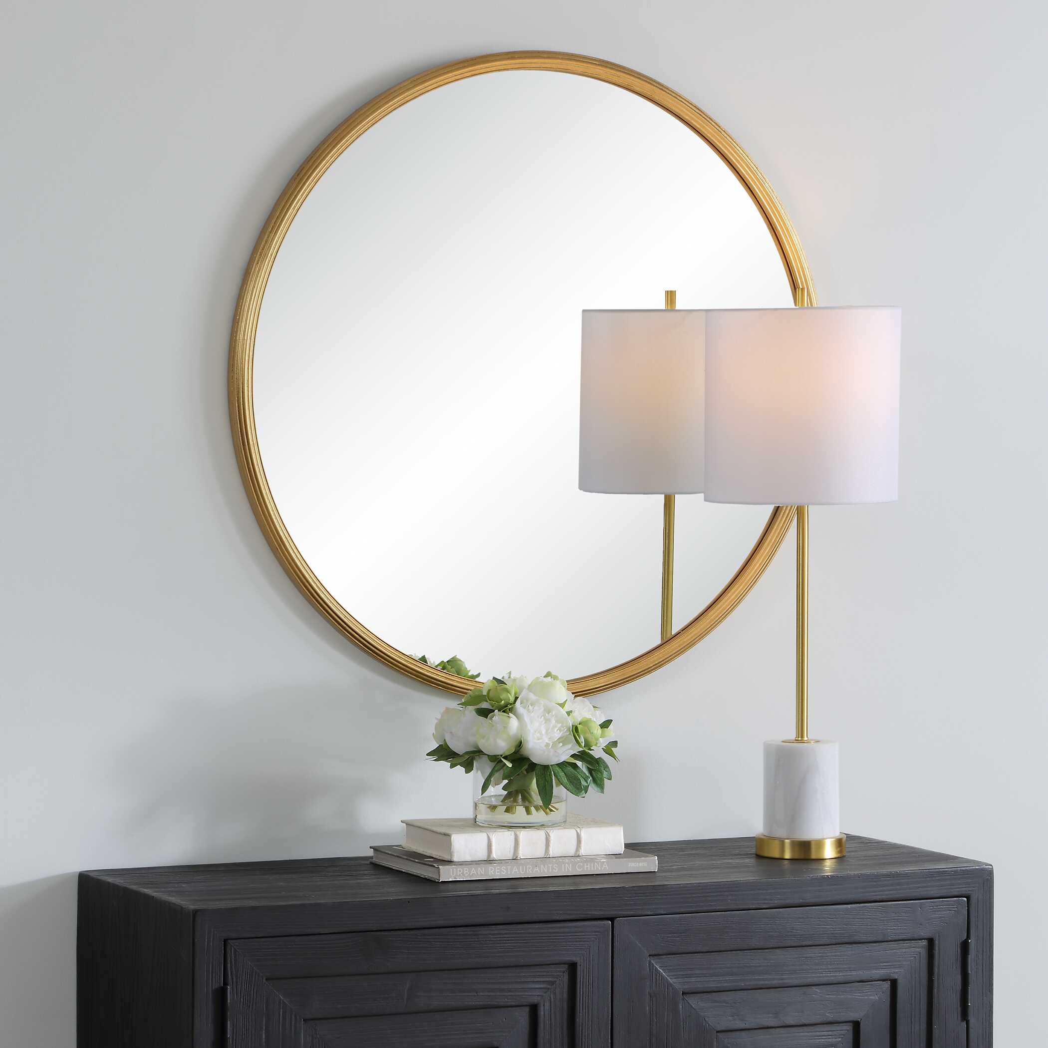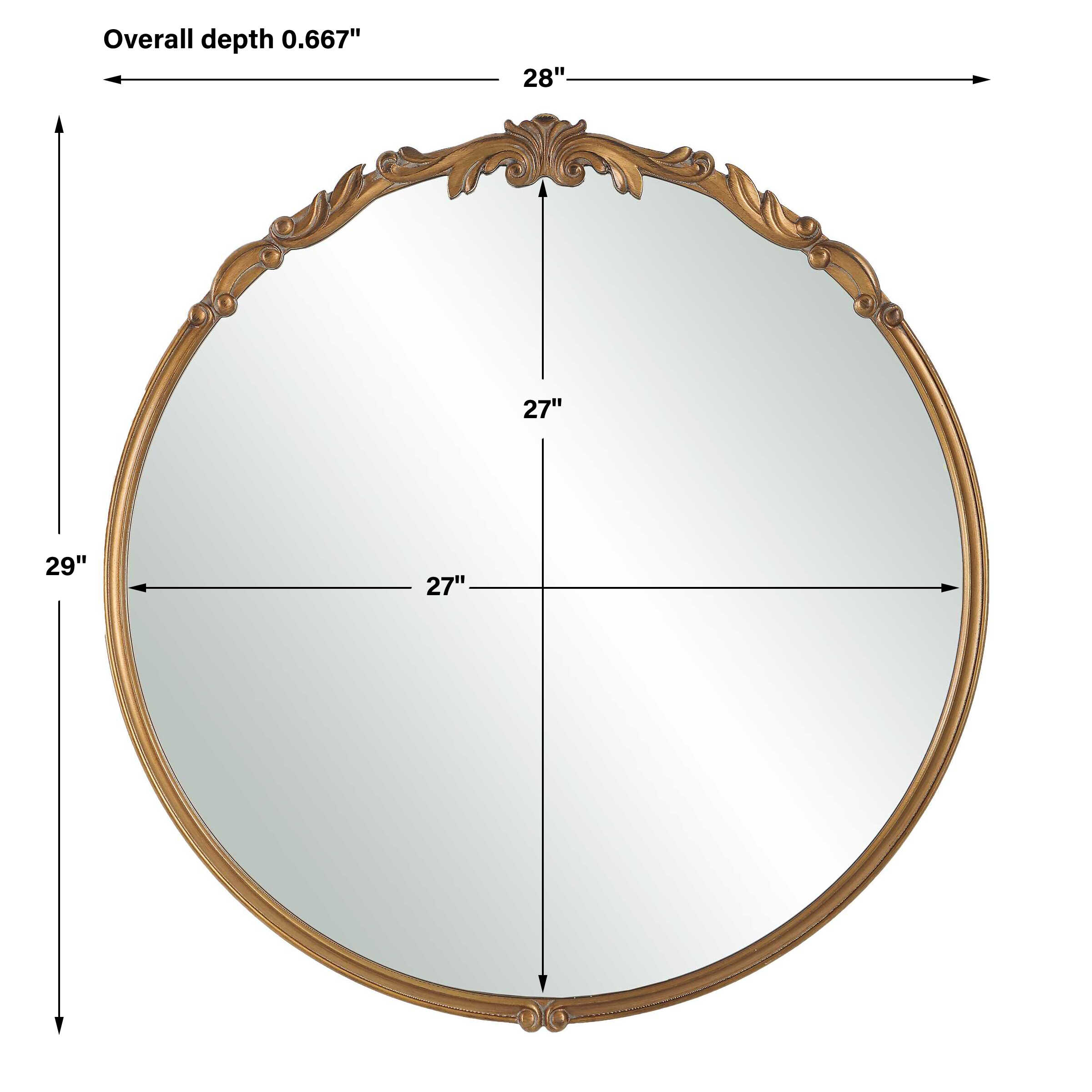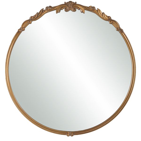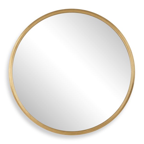 This 32" round mirror features a unique stacked frame construction, boasting a slightly smaller frame layered atop a slightly larger one, creating a dimensional effect. The rounded edges of both frames soften the look, adding a touch of subtle refinement. Finished in a matte black, this mirror is a blend of contemporary design and timeless elegance.
